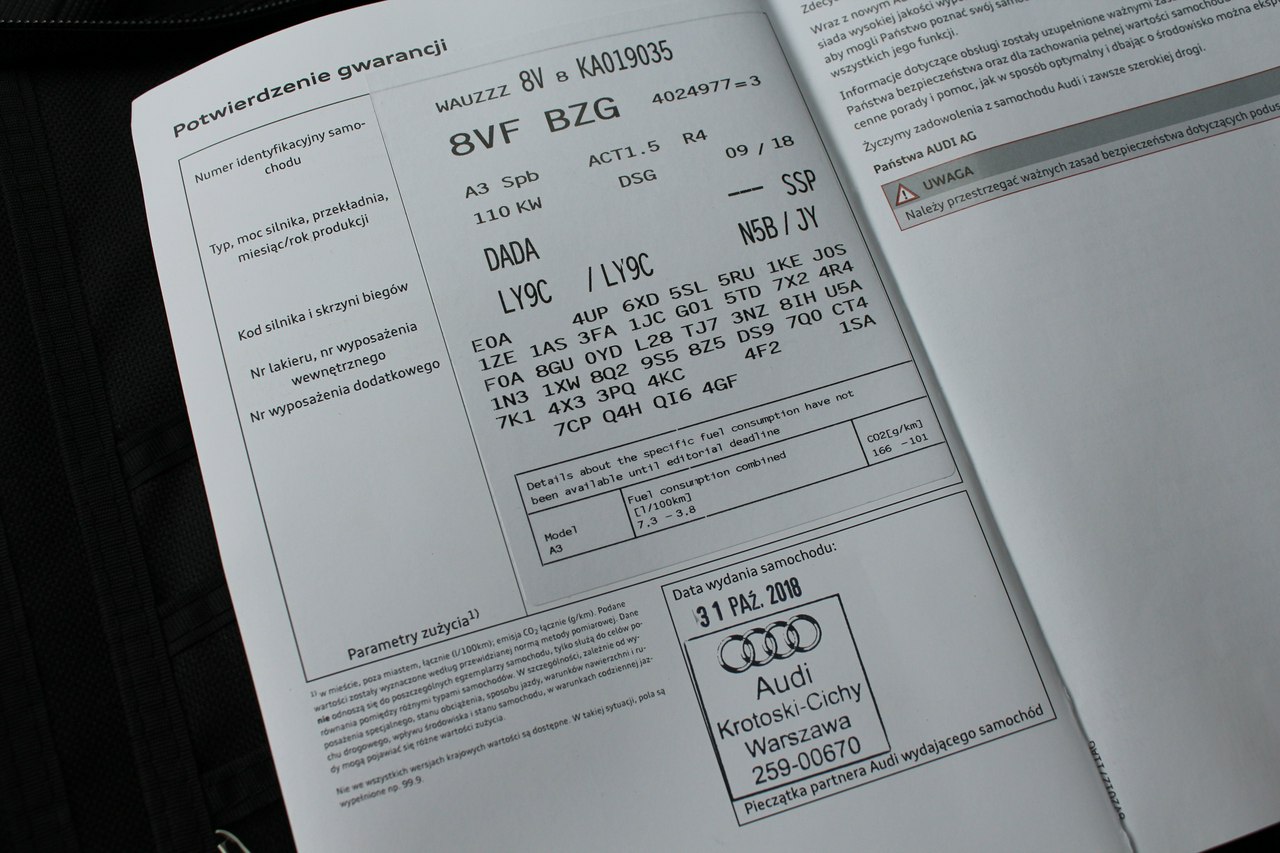 - Numer VIN: WAUZZZ8V8KA019035